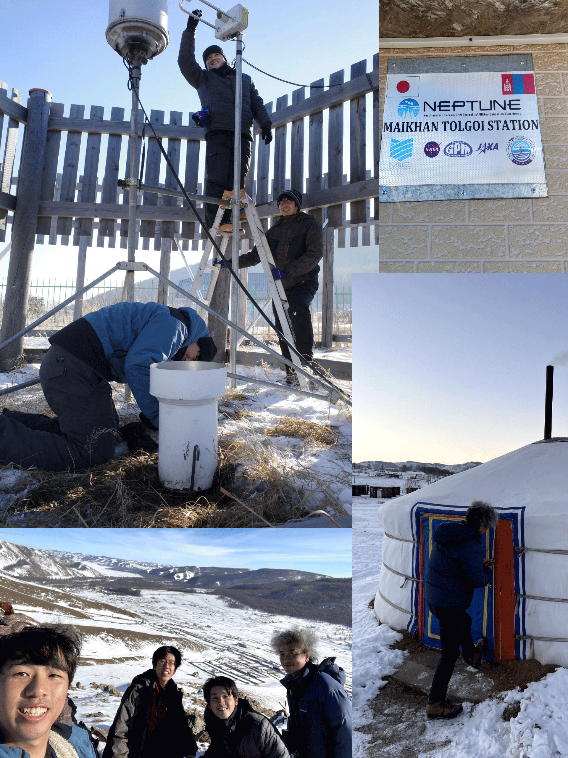 11/2~11/7にかけてモンゴル巡検を行い、飯島教授、阿部研究員と院生2名が参加しました。巡検では主に気象観測サイトの整備・点検を行いました。現地は気温-10℃以下が連続する厳しい環境でしたが、現地の食文化(主に羊)やゲルでの宿泊体験など、貴重な経験をすることができました。初めての海外巡検で不安なところもありましたが、非常に有意義な巡検となりました。